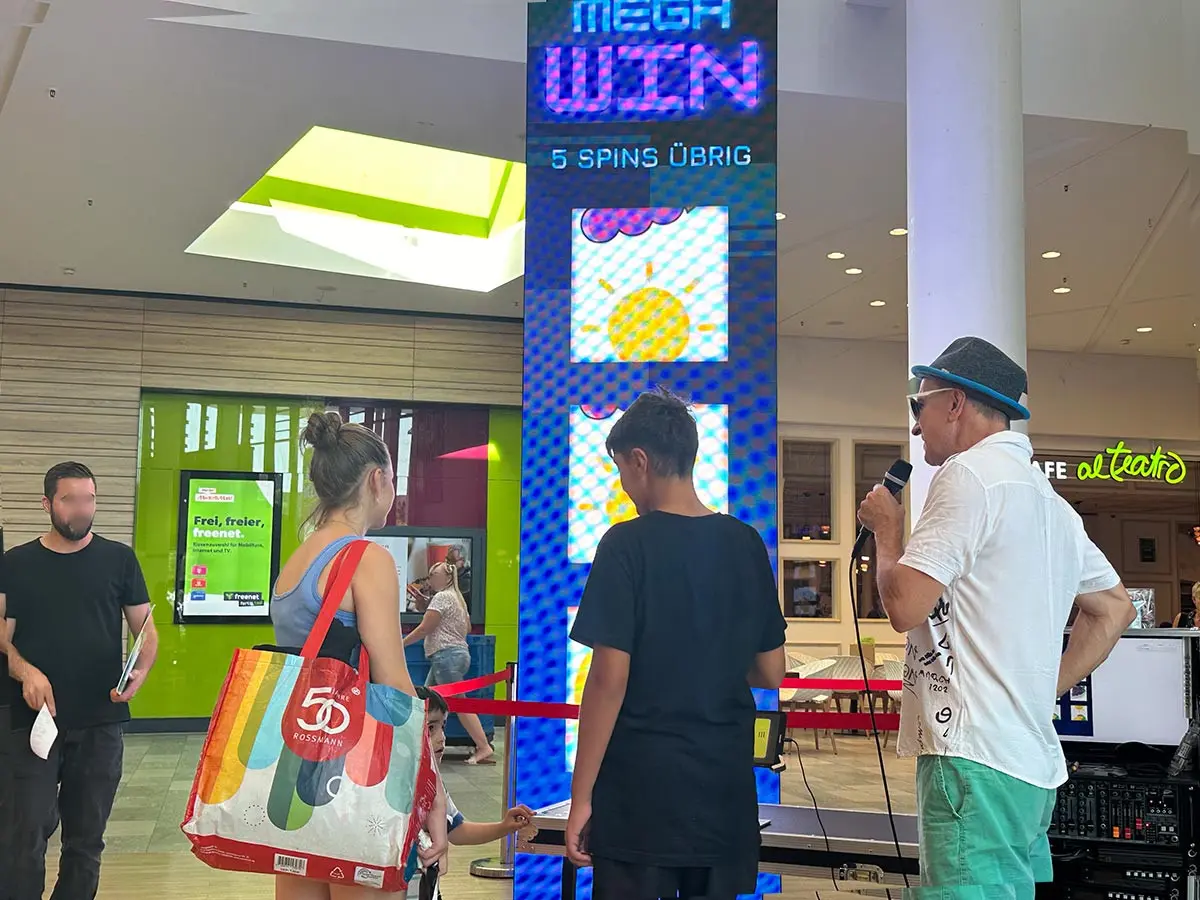 Spielen, auffallen, Marke sichtbar machen: Der LED Game Tower ist eine moderne Gewinnspiel-Lösung für Promotionflächen und Center-Aktionen. Vermietung ausschließlich in Berlin & Berliner Umland.